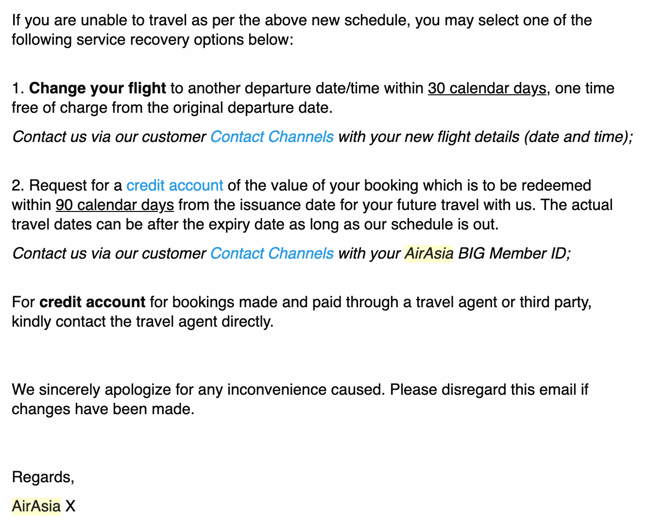 몇 달 전에 제가 한국에서 출발해서 말레이시아를 경유하여 호주로 도착하는 티켓을 구매했는데요. 에어아시아에서 갑자기 출발 시간을 하루 뒤로 연장한다며 이메일이 왔습니다. 저는 그 날짜에 꼭 출발을 하여야 하는데 그다음 날 출발을 하면 호텔이나 추후 일정이 모두 엉망이 되어서 이 비행기를 취소할 수밖에 없는 상황이 발생했습니다. 출발 날짜는 7월 초 정도였는데 이 에어아시아 티켓을 환불을 받거나 다른 날짜로 교환을 하고 싶었습니다. 보통의 경우, 저가 항공은 항공권 교환이나 환불이 불가능합니다만 저는 에어아시아 정책에 근거하여 환급을 받았습니다. 아래 함께 보시죠.