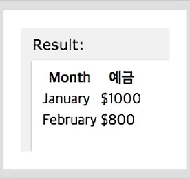 7. HTML을 이용해 Table을 만들어 보자 테이블이란 무엇일까요? 테이블 하면 저는 시간표(time table)가 생각납니다. 어느 학교를 들어가던 벽면 한쪽에 과 같은 시간표가 항상 붙어있습니다. 오늘은 저런 테이블을 html로 만들어 보려고 합니다. 참고로 예시1 TABLE은 아래 CSS로 꾸며진 테이블처럼 칸이 그려져 있지 않습니다. 테이블을 CSS와 함께 꾸미는 방법은 추후에 배울 테니 걱정하지 마시고 지금은 테이블에 보이지 않는 칸막이 같은 것이 있구나! 이렇게 생각하시면 될 것 같습니다. 인트로를 생략하고 바로 본론으로 들어가도록 하겠습니다. * 아래 나오는 예시의 코드입니다. 참고하셔서 사용하세요. 1. 테이블 만들기 Month 예금 January $1000 February $800 에 보이는 테이블은 행x열이 3x2인 테이블은 가지.. 더보기 이전 1 ··· 83 84 85 86 87 88 89 ··· 106 다음